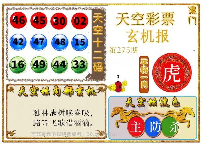275期:绝杀三肖【鼠马羊】开:鸡45准 |